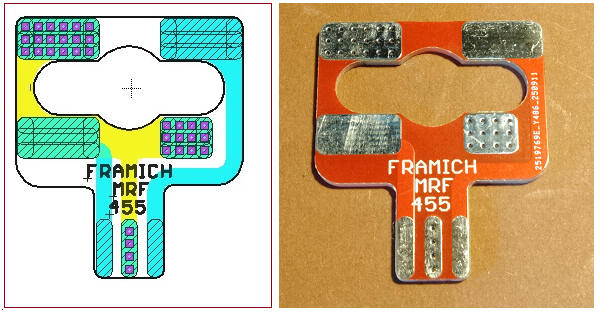 Questa basetta è stata concepita per adattare il transistor Motorola MRF455 al posto dell'MRF477 (introvabile) negli apparati President Jackson. Nel link sottostante se ne può visionare uno installato su un President Jackson: https://www.youtube.com/watch?v=q1TssYkFsbI&t=1s